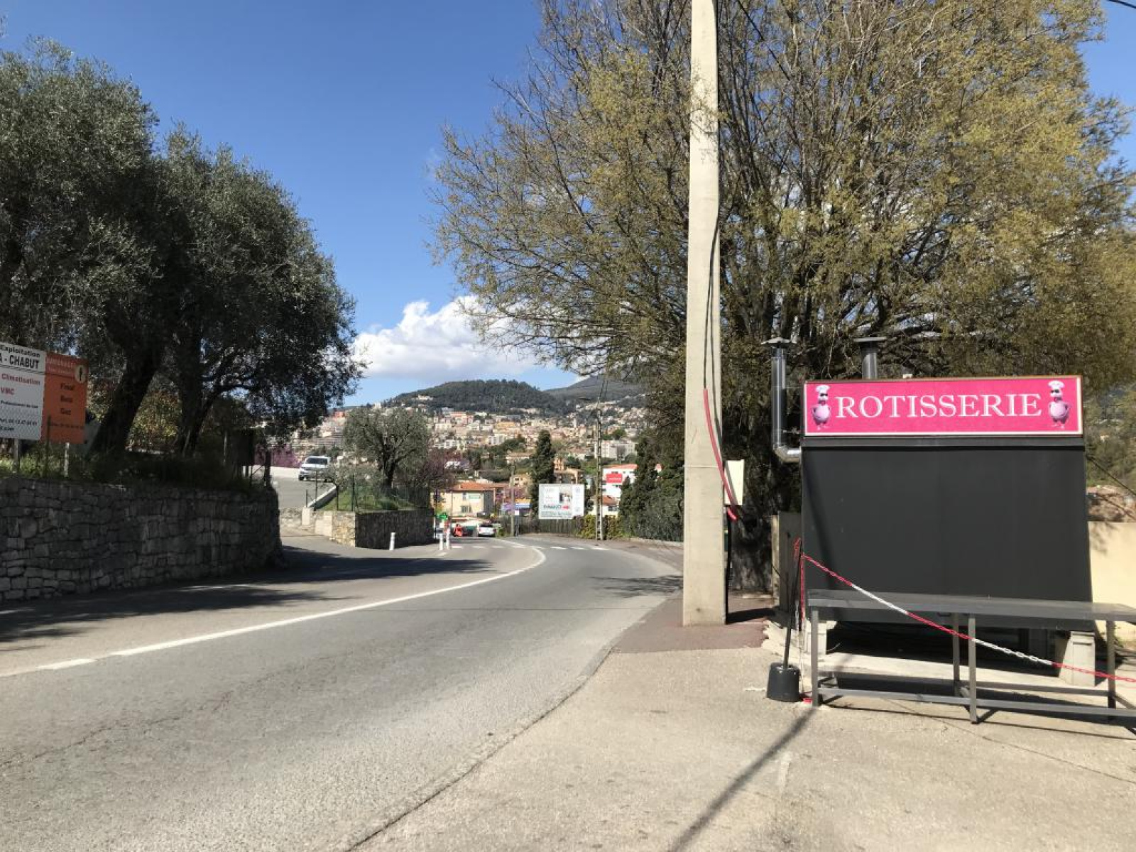 A Grasse, secteur des 4 chemins, où circulent jusqu’à 4 000 véhicules/h aux heures de pointe, loue local avec extraction de 125 m² sur emplacement à forte visibilité.