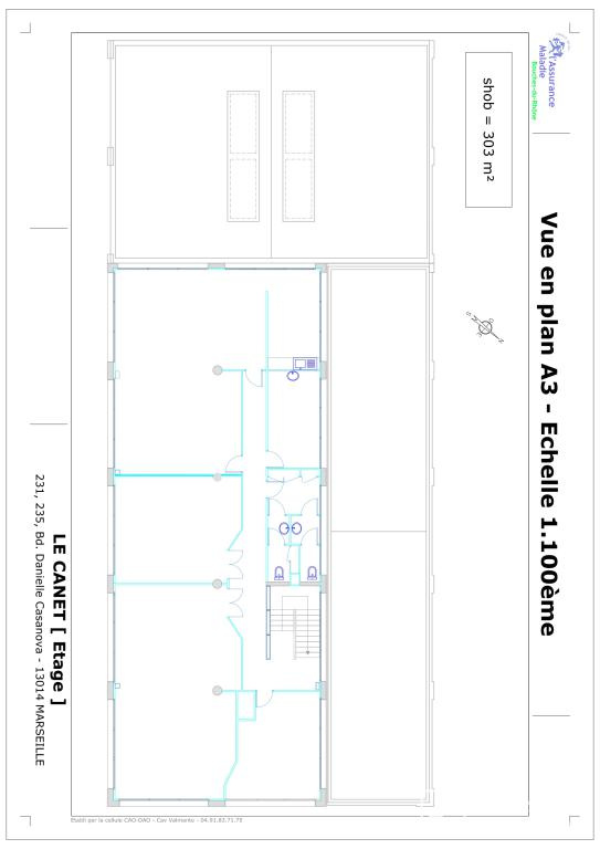 Premier étage : 303 m², parfait pour bureaux ou espaces complémentaires.