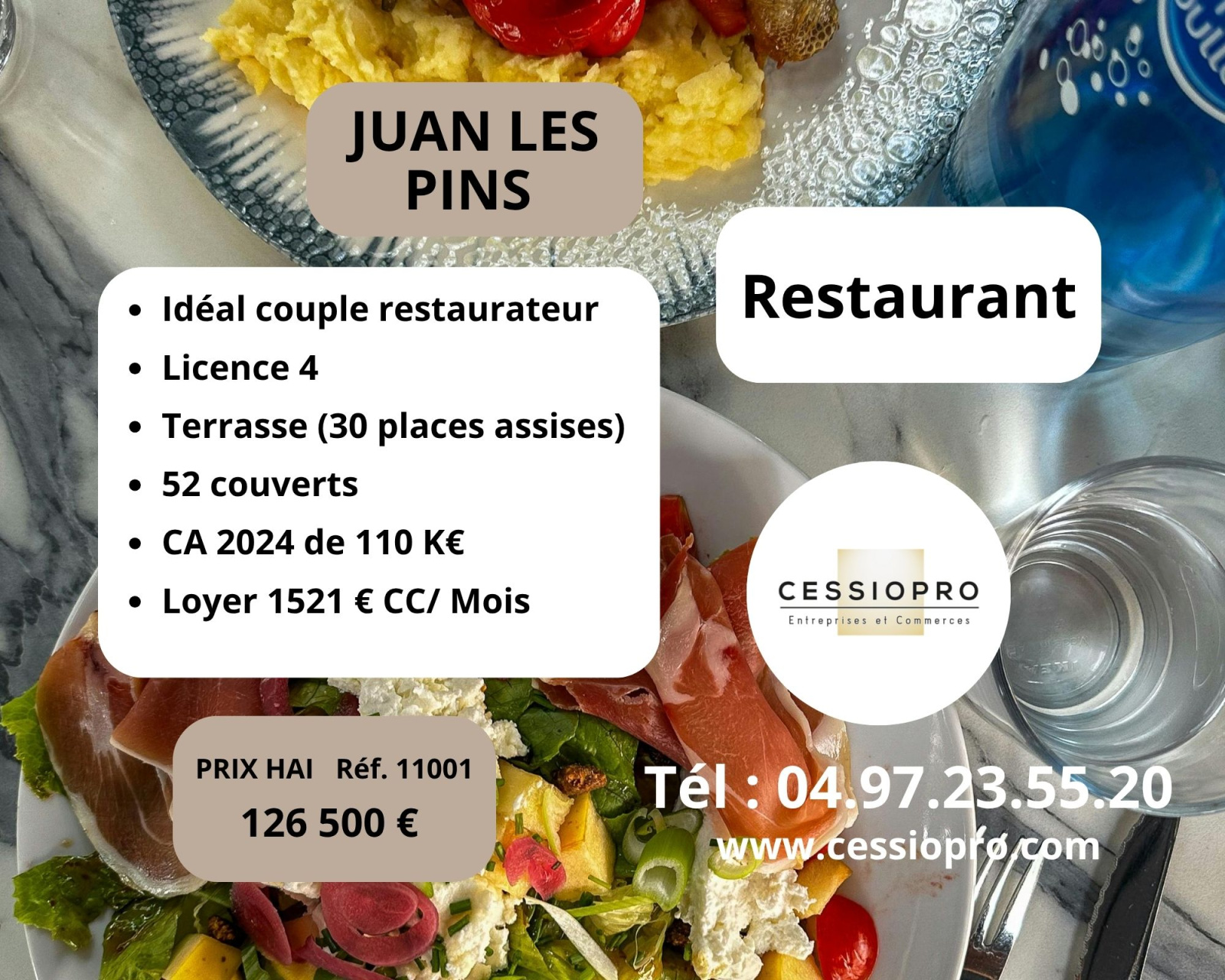 A Juan les Pins, à la vente charmant petit restaurant, licence 4, grande terrasse, idéal couple restaurateur. A 2 minutes des plages.