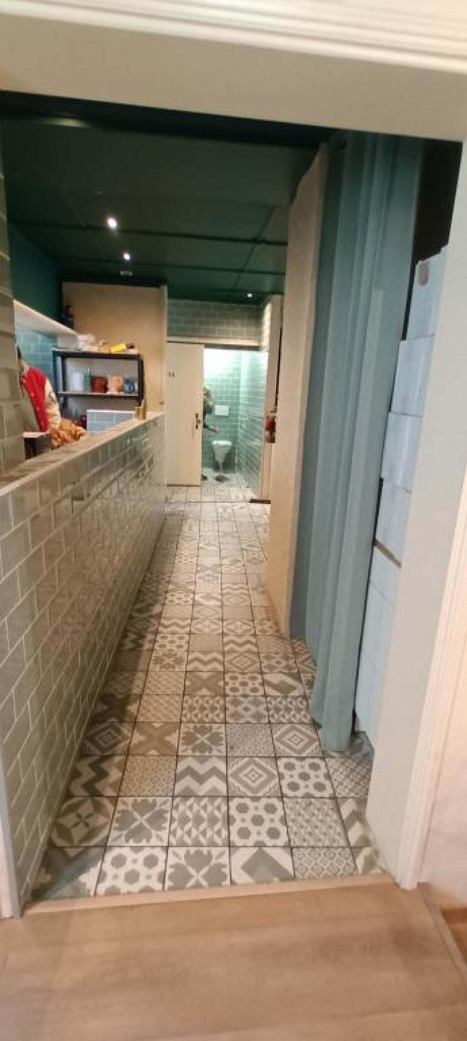 Le sous-sol très spacieux, avec un coin, branchement des fûts et des bibs de vin, un espace vestiaire et d'autres surfaces pas encore utilisées.