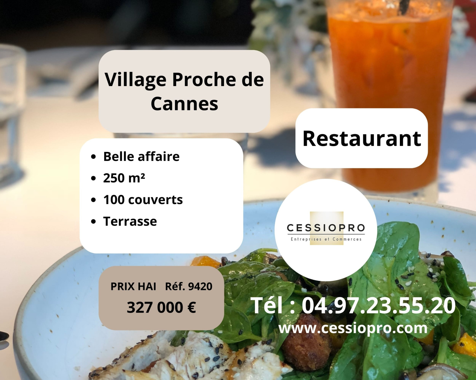 Restaurant traditionnel, de caractère, plein sud, rue principale, village réputé proche de Cannes