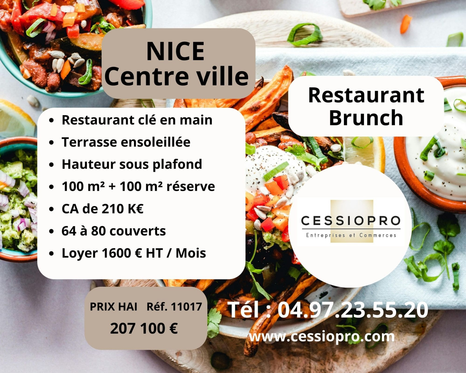 Centre-ville de Nice À Vendre un Restaurant brunch clé en main avec terrasse ensoleillée – Ce charmant restaurant bénéficie d’un cadre chaleureux, avec de belles arches, une hauteur sous plafond remarquable et une décoration bohème mêlant bois, osier et lumière naturelle. L’établissement propose une cuisine du monde et un large choix de boissons chaudes, attirant une clientèle fidèle, locale comme internationale. Le quartier est particulièrement adapté à ce type d’activité, avec un flux constant et une ambiance conviviale.