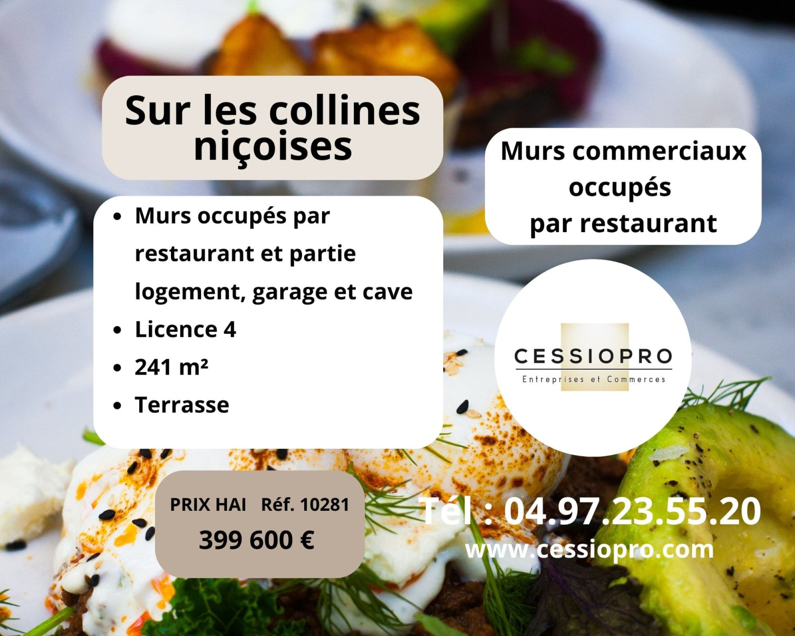 241 M2 DE MURS COMMERCIAUX OCCUPES PAR UN RESTAURANT AVEC LOGEMENT SUR LES COLLINES NICOISES ET UNE LICENCE 4