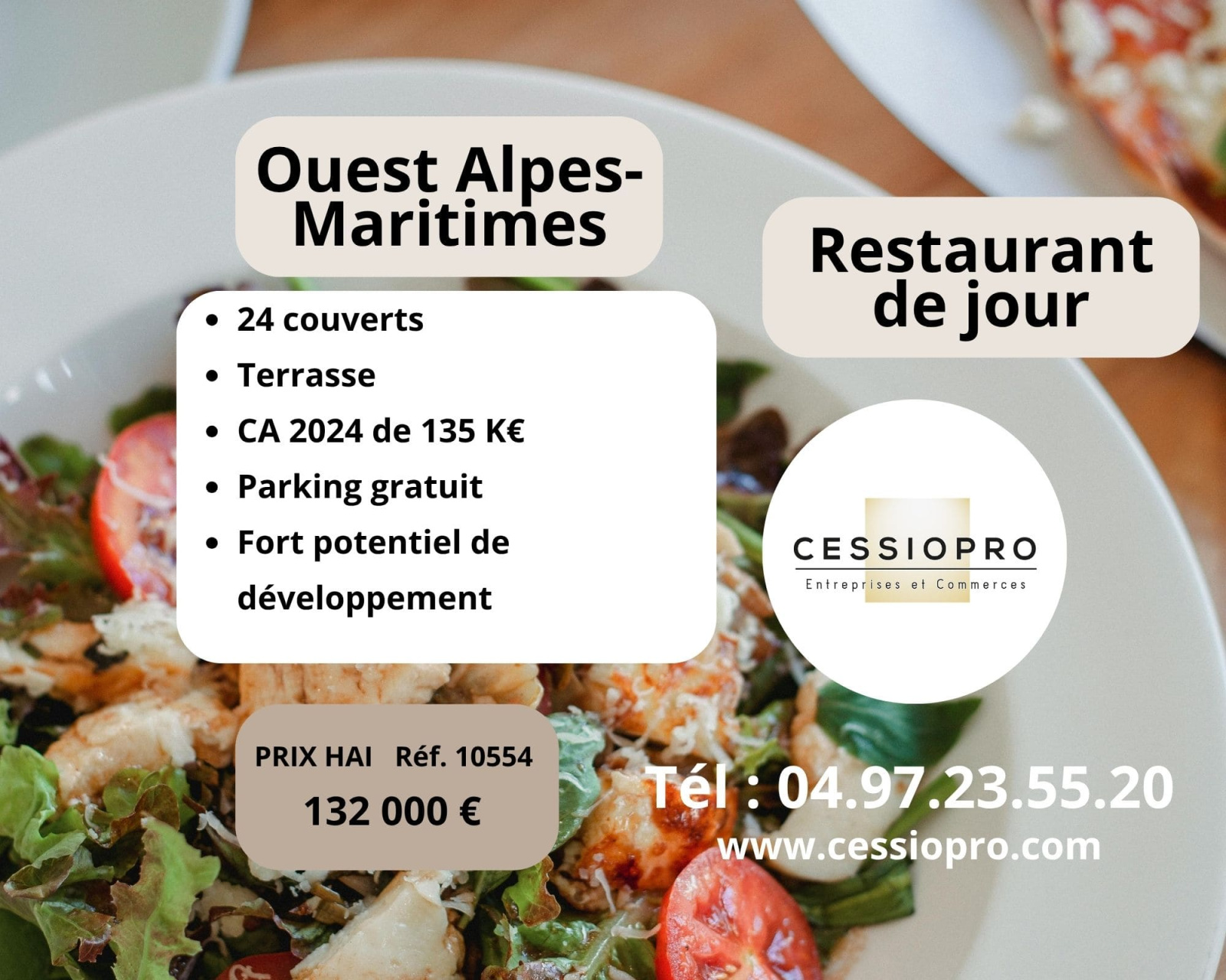 RESTAURANT de JOUR CA 135K€– OUEST ALPES-MARITIMES