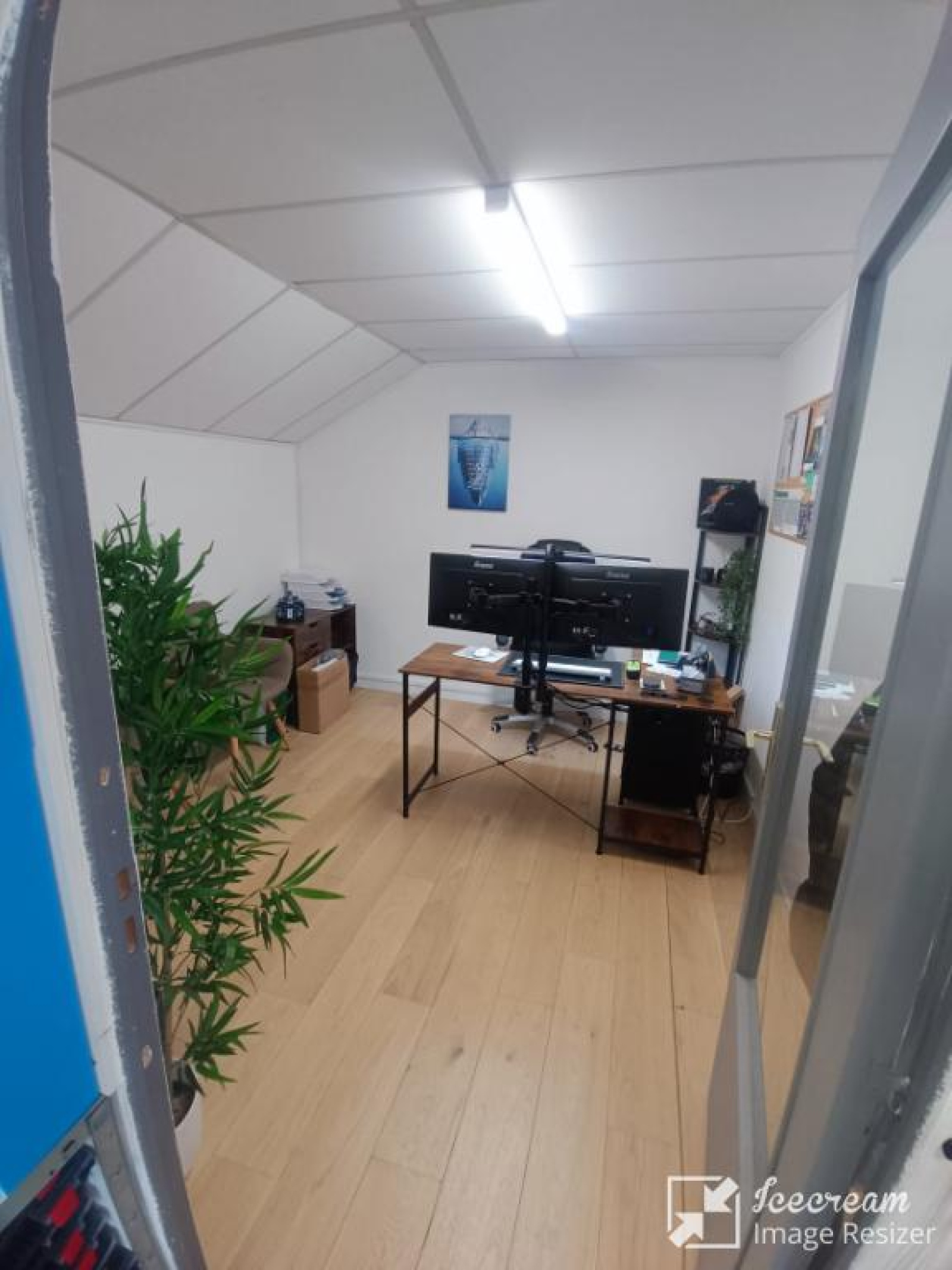 L'entreprise occupe un vaste local de plus de 100 m², situé au premier étage d'un complexe commercial offrant un accès facilité grâce à de grands parkings.