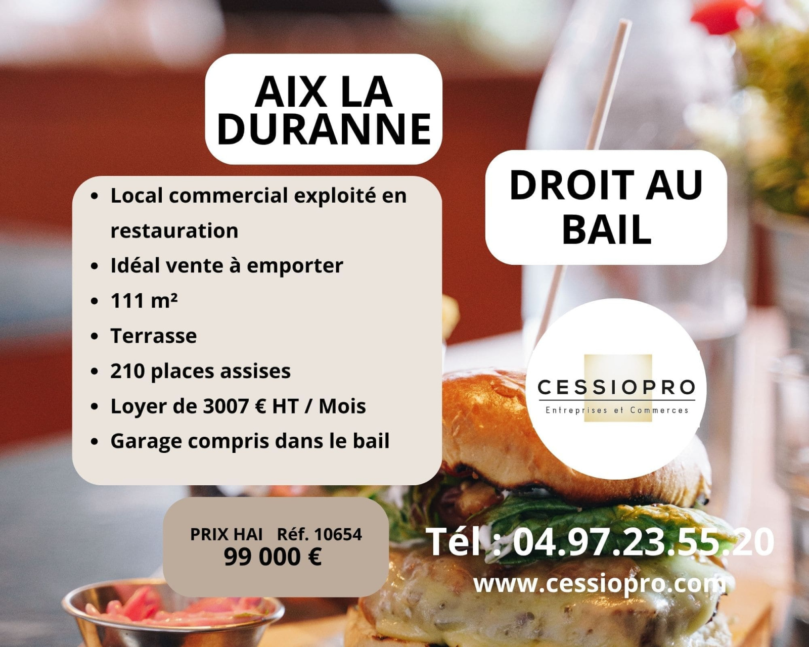 Cession de droit au bail – Restaurant idéal Vente à Emporter – Emplacement stratégique