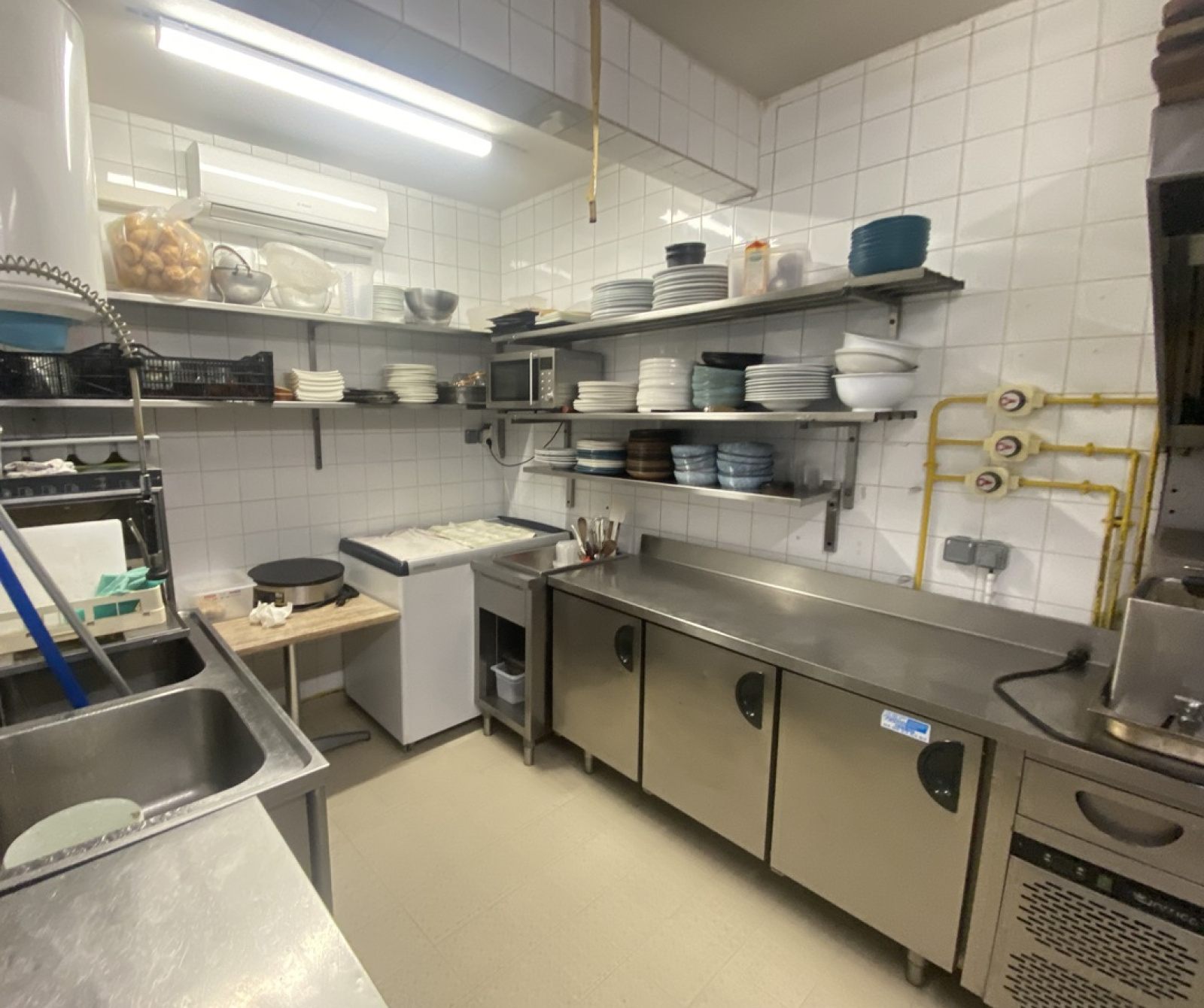 - Equipements complets et récents : cuisine équipée d’un piano avec plusieurs feux gaz, Four mixte, Friteuse, plan de travail, réfrigérateur de grande capacité pour stockage des produits frais, garde-manger, grande zone de plonge, mobilier moderne. Installation prête à l’emploi pour une prise en main immédiate. Le cédant propose également un accompagnement après la vente.