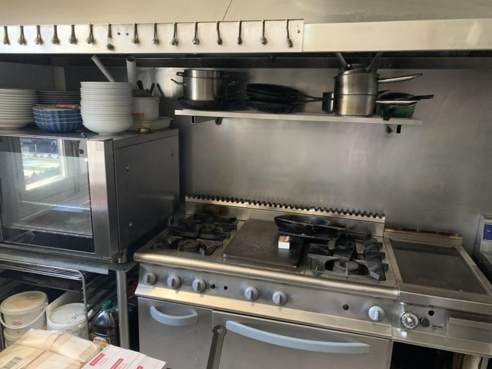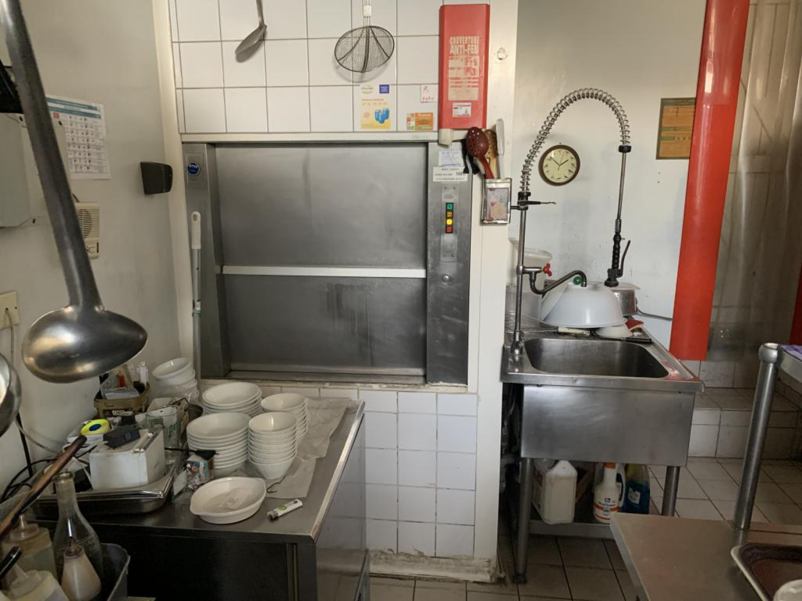 COTE CUISINE : Très belle cuisine tout équipée à l’étage de l’établissement. Un passe-plat a été installé pour faciliter le service.
